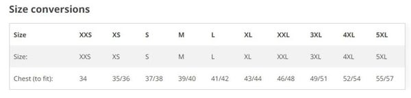 - Collar high full length zip with tear release storm flap.